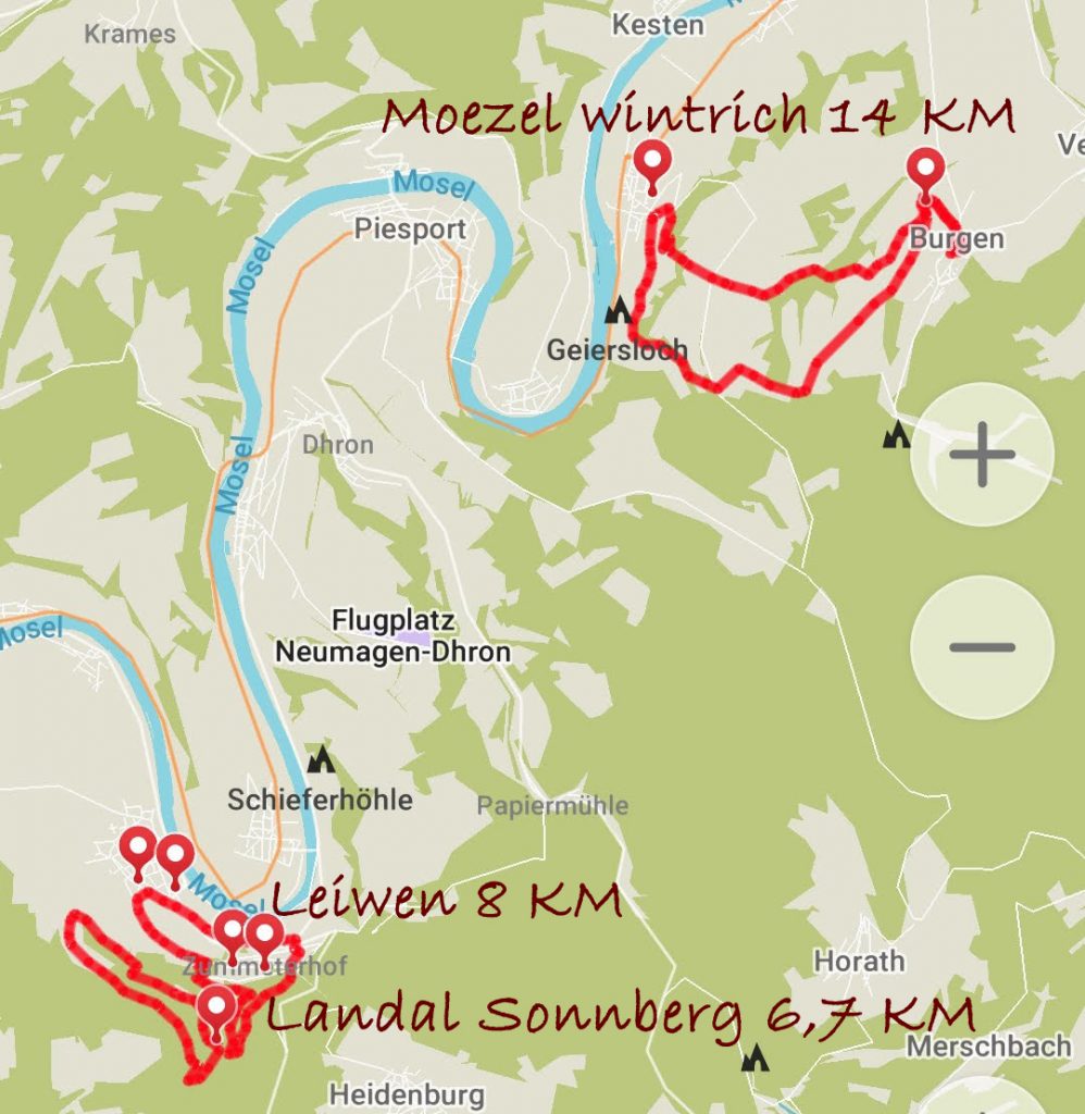 De routes lopen door de wijnvelden, bossen en langs de Moezel.